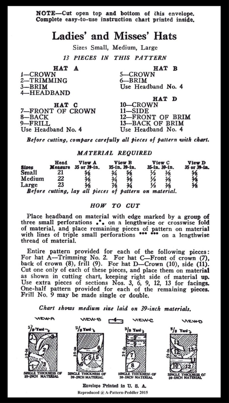 Please Note: this is a reproduction print pattern on printer paper from the original pattern as pictured above