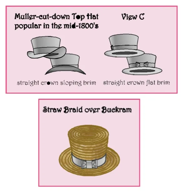 This pattern has instructions for fabric covered buckram and straw covered buckram hats.